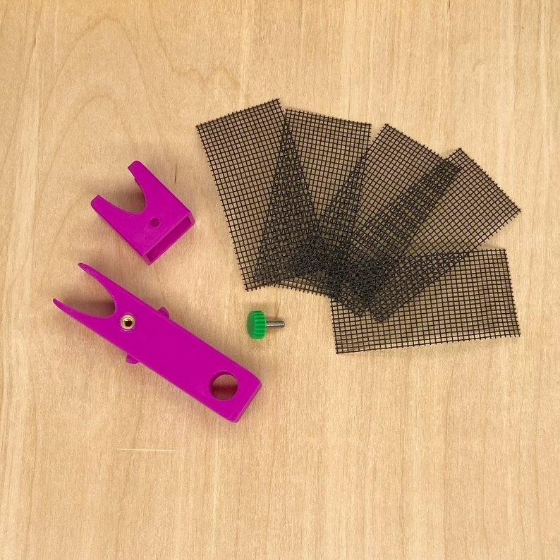 The tool itself is 3D printed with a mesh screen. The mesh is made from window screen.
